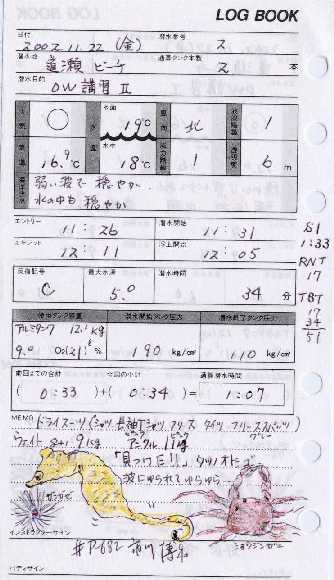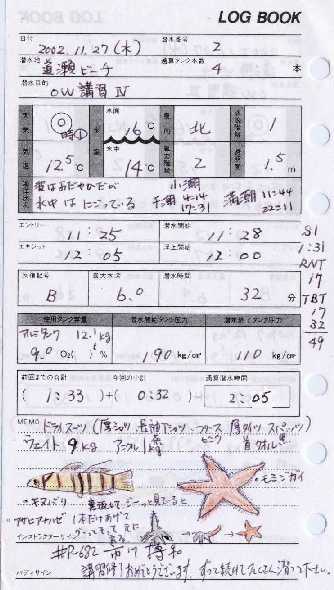 ダイビングで楽しんで、ログブックを書く事が楽しめて、